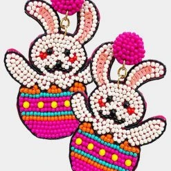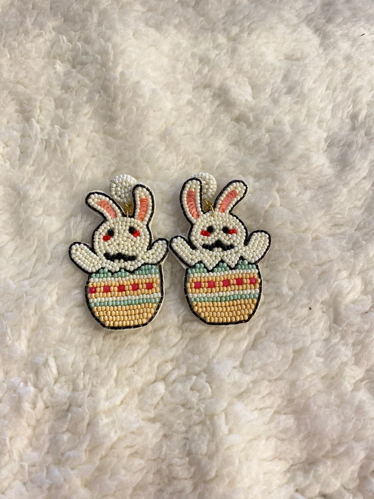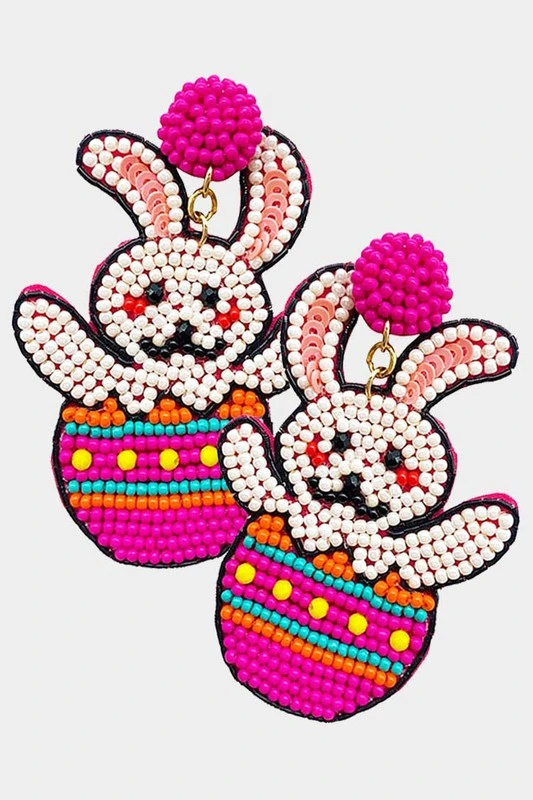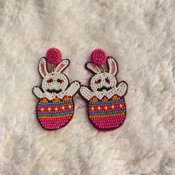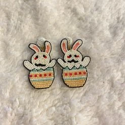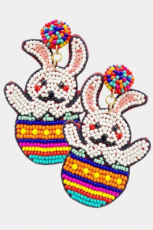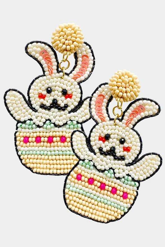 Adorable seed beaded easter bunny egg earrings, perfect for Easter Sunday.