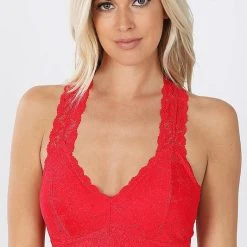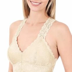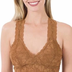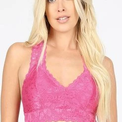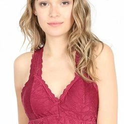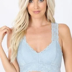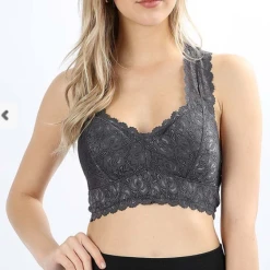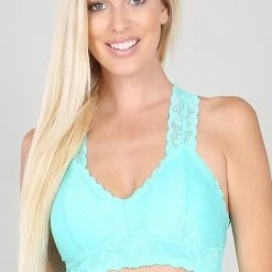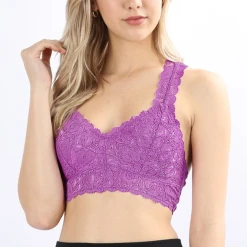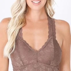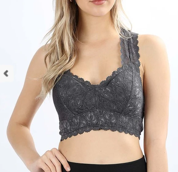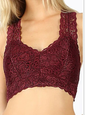 STRETCH LACE HOURGLASS BACK WITH FULL MESH LINING BRALETTE. REMOVABLE BRA PADS