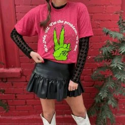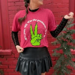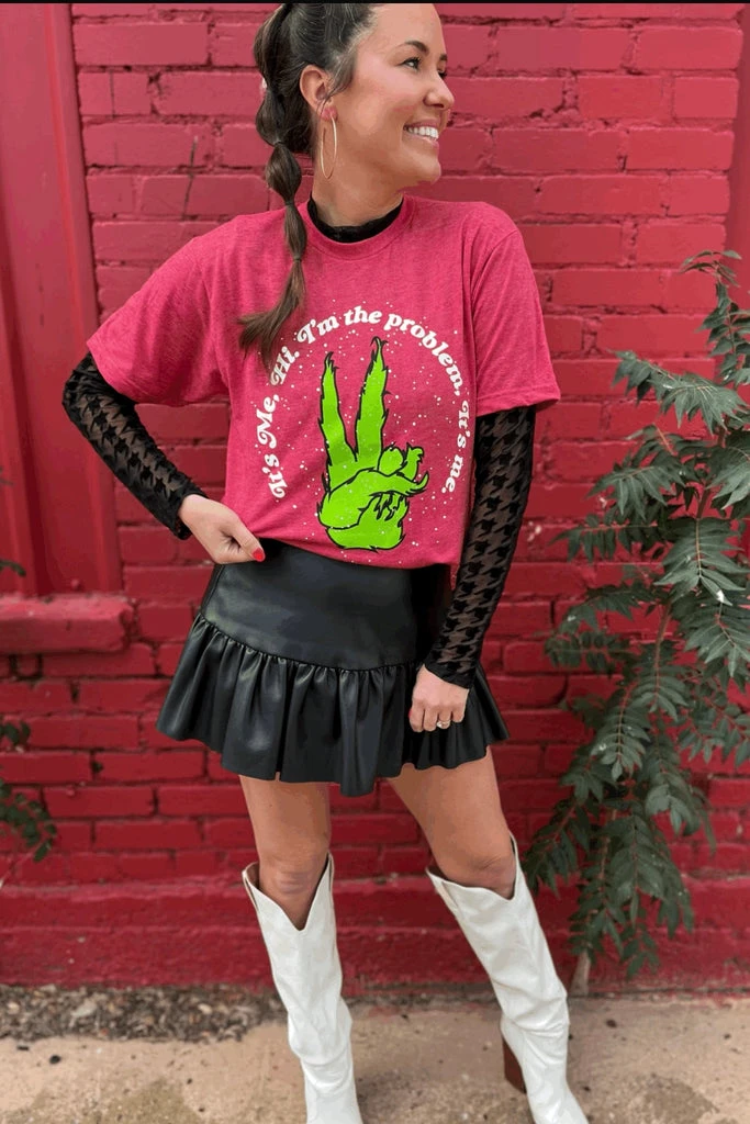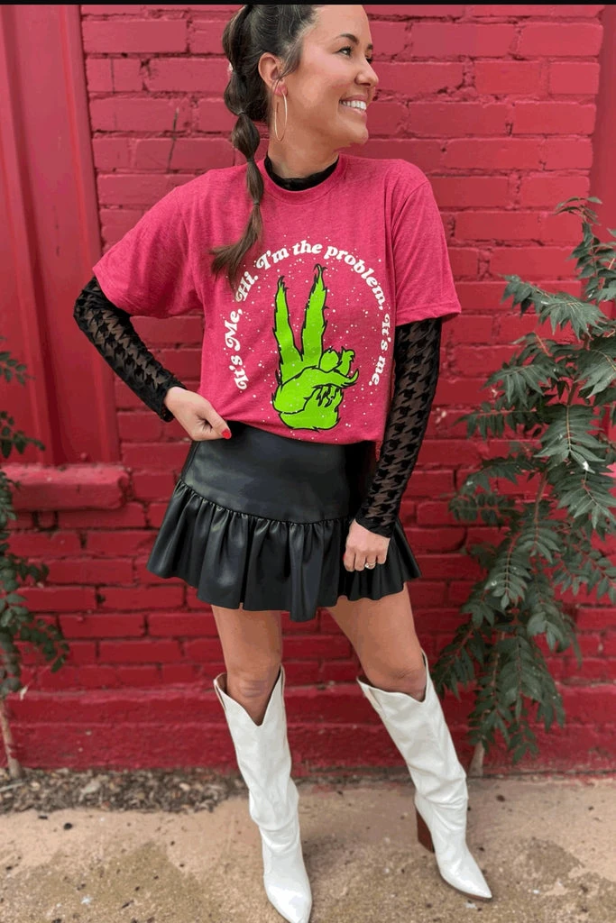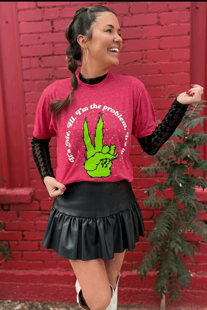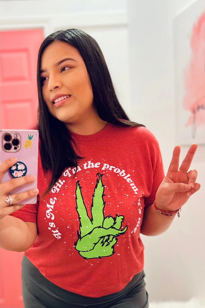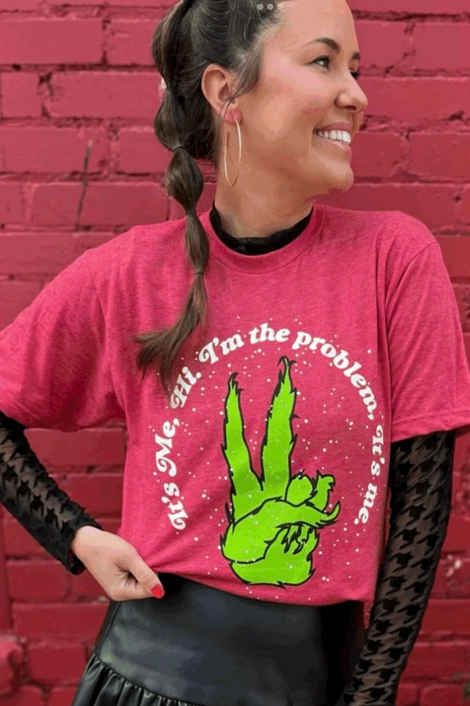 It’s me, your soon to be favorite tee! Hi. I’m the peaceful comfiest grinch tee you can find. I’m the problem, It’s me the perfect tee to gift this holiday season or take great family pictures too!