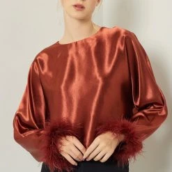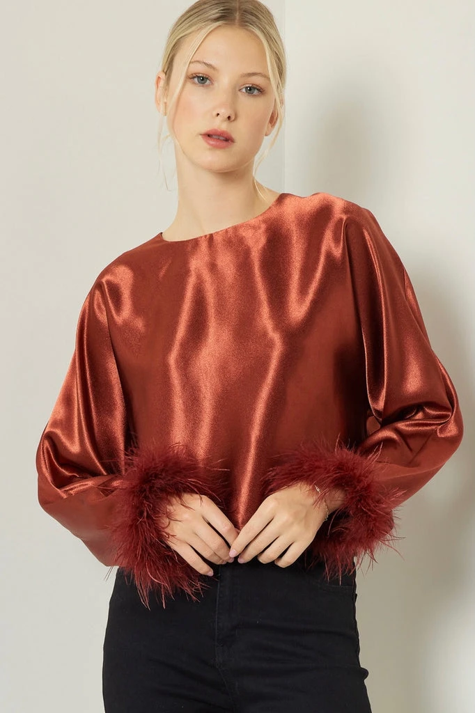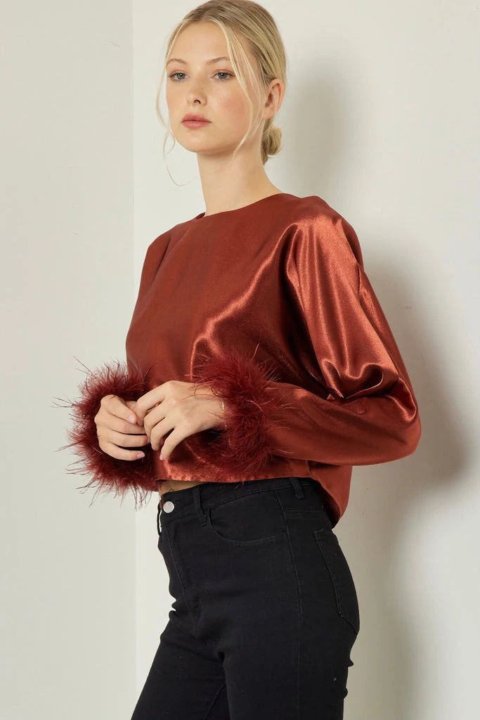 Faux Feather Trim at Sleeve Openings